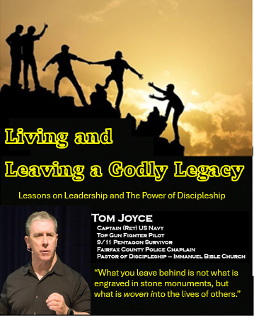 Retired Navy Captain Tom Joyce is a recently retired Pastor at Immanuel Bible Church in Springfield, Virginia. Raised on Long Island and recruited as a lacrosse player, Tom graduated from the United States Naval Academy in 1979. After completing Naval Flight Officer training, he was selected to fly as a RIO (“back-seater”) in the F-14A Tomcat and later graduated from the Navy Fighter Weapons School (TOPGUN) in 1983. Two years later, Tom was selected to fly in some of the scenes in the movie “TOPGUN”. After several operational tours in fighter squadrons Tom reported to Fighter Squadron One-Eleven as Commanding Officer onboard the aircraft carrier USS Kitty Hawk. Under Tom’s leadership, Fighter Squadron One-Eleven was recognized as the best Fighter Squadron in the Pacific Fleet. Tom survived the September 11, 2001 terrorist attack on the Pentagon, which included his office. He retired in August of 2003 after serving on active duty for more than 25 years. In addition to his bachelor’s degree from the United States Naval Academy; Tom earned a Masters in Public Administration from Harvard University and both a Masters in Biblical Studies and a Masters of Divinity from Capital Bible Seminary. Tom has accumulated over 2200 hours in the F-14A Tomcat, and has made more than 600 aircraft carrier landings. His awards include the Defense Superior Service Medal, Legion of Merit, Meritorious Service Medal, Joint Meritorious Service Medal, Navy Commendation Medal, Navy Achievement Medal and numerous other unit and individual awards.