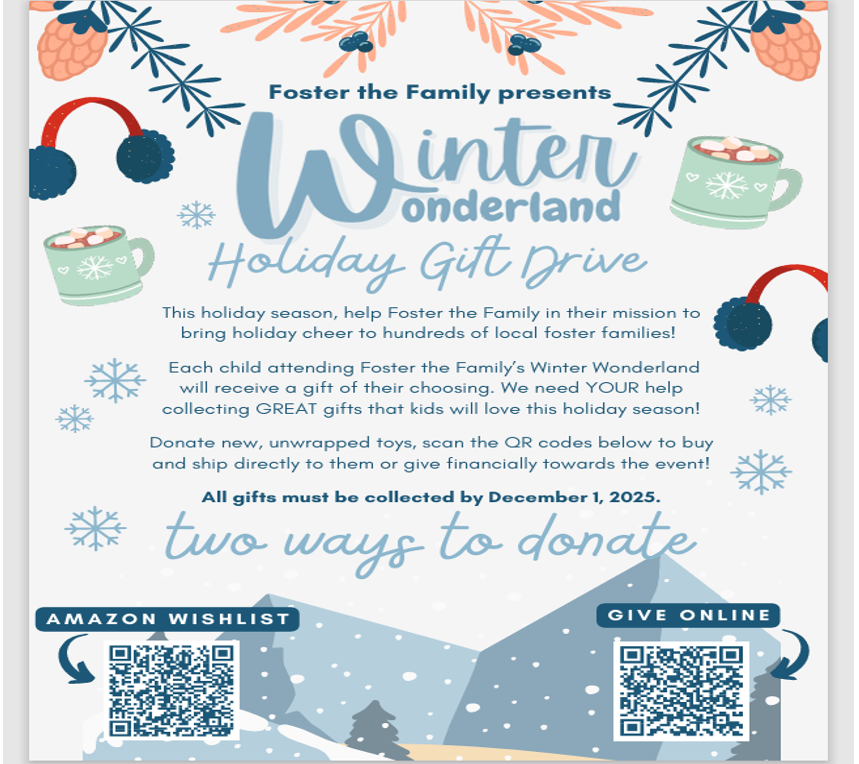 As in past years, Forcey is once again supporting the Foster the Family (FtF) Winter Wonderland Holiday Toy Drive as its “Pure Religion Sunday” project. Please help make the holidays a little more special for hundreds of local children in foster care by donating a gift for the FtF Winter Wonderland event on December 6th. To choose a gift to donate, go to the Winter Wonderland Amazon Wish List by viewing this page: Winter Wonderland Amazon Gifts. Purchase/shipping instructions are located at the top of the list once you open the link. If you would like to provide financially for the event, please visit: Winter Wonderland FTF Sponsorship. Thank you for sharing God’s heart for the fatherless!